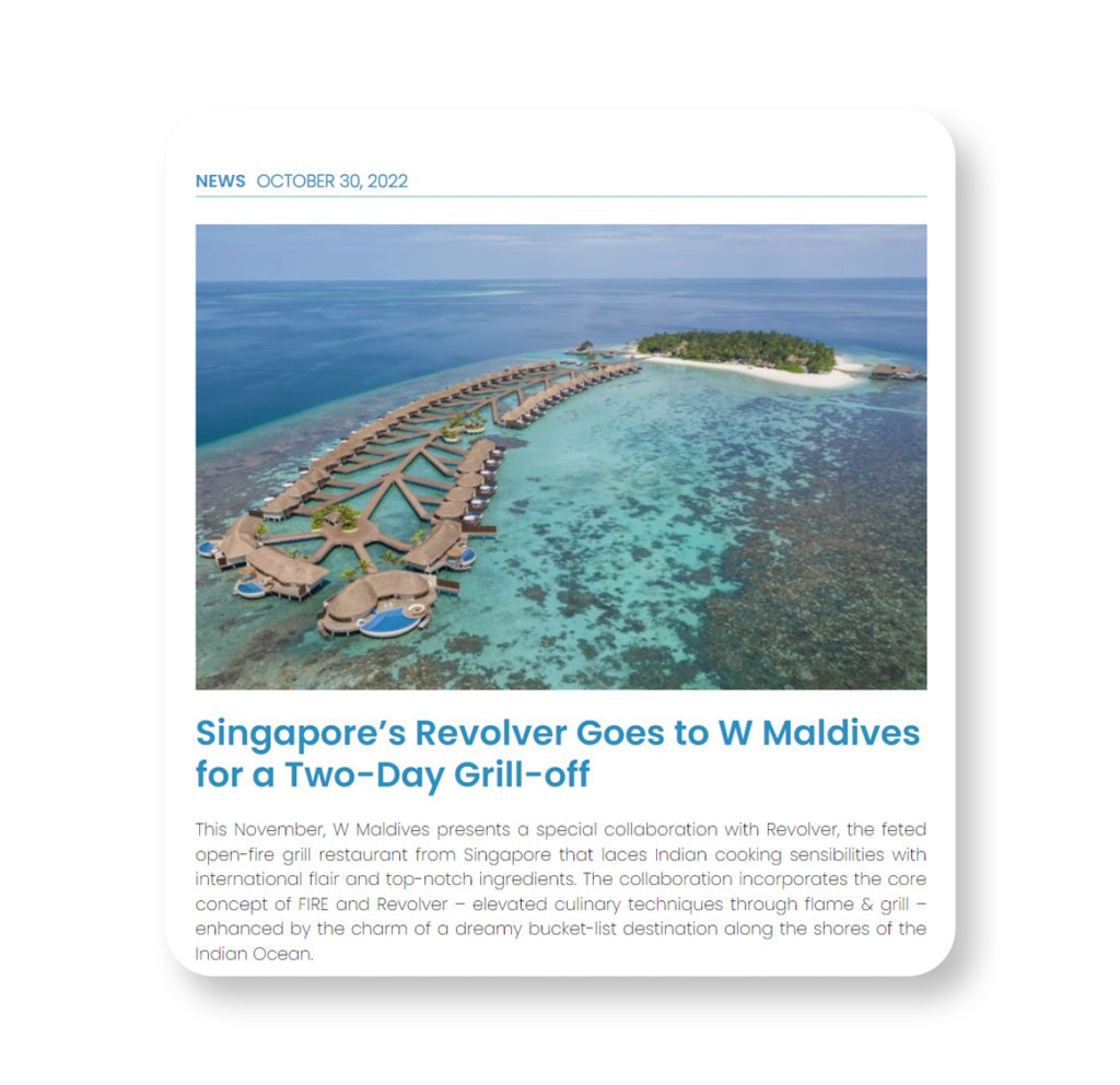 Revolver A bold, refined grill, Revolver laces Indian cooking sensibilities with international flair and ingredients. Fire is an essential element in the creations of Chef Saurabh’s revolving menu. Custom built wood fire grill, smoker and tandoor create charred, bold flavours and form a central part of the dynamic open kitchen. With its industrial-chic design and rocking atmosphere, Revolver brings upbeat energy to its shophouse setting on Tras Steet.